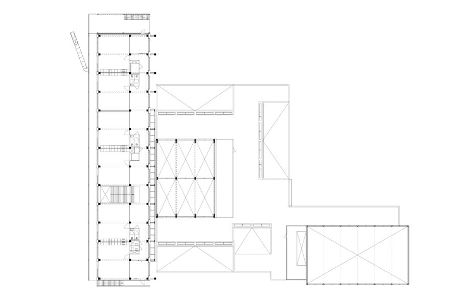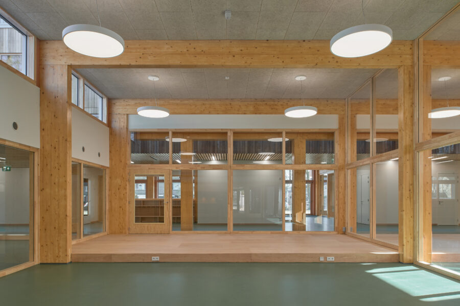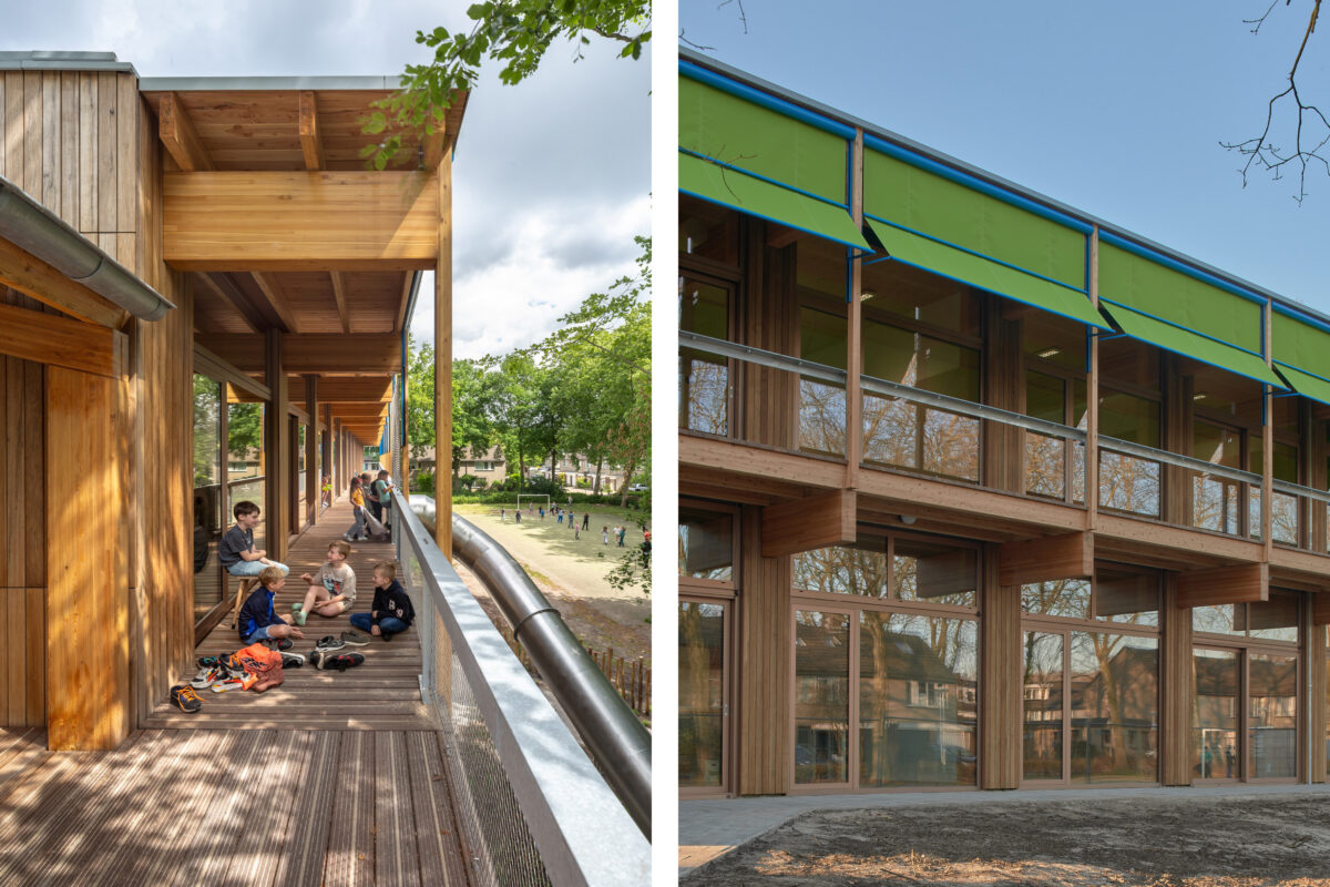 The primary objective of this renovation and reconstruction project is to preserve as many of the existing shed-roofed classrooms as possible, reusing elements and salvaging the remainder. The result is a new, optimized two-storey building comprising ten new group spaces. The timber main loadbearing structure, made up of prefabricated columns, beams and CLT floors, is removable, allowing for a relatively short construction time and flexible future use. The predominant use of biobased materials also contributes to a reduction in carbon emissions. The project features a materials passport and pupils are educated about the circular materials used and their school’s energy consumption. The GPR score (a dutch method for measuring and evaluating sustainability and performance of buildings) averages out at 8,1.