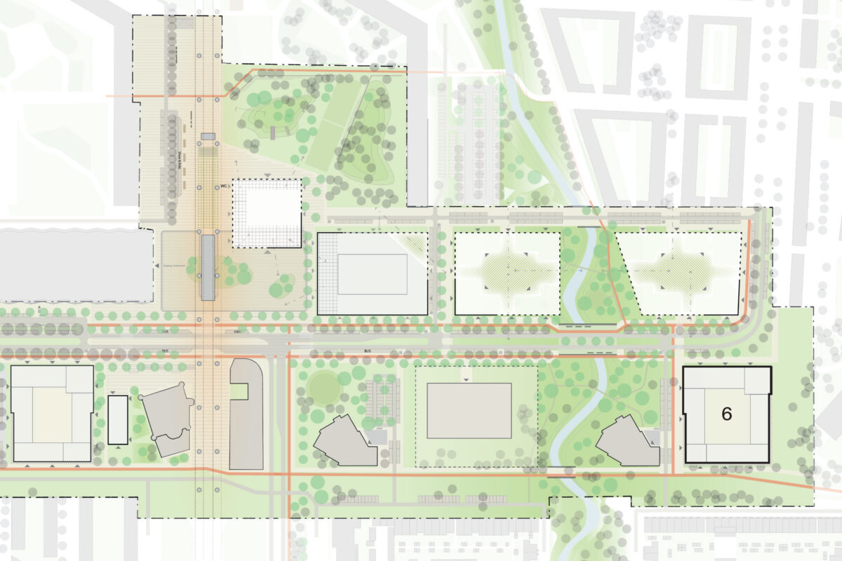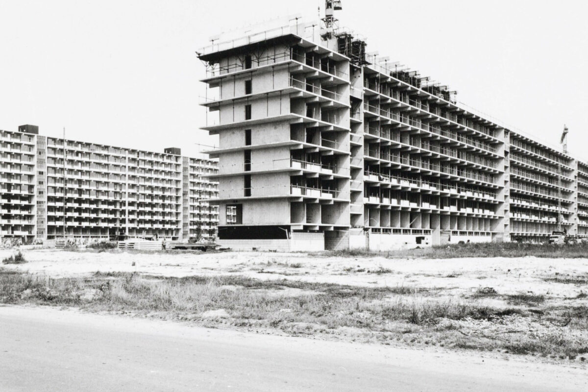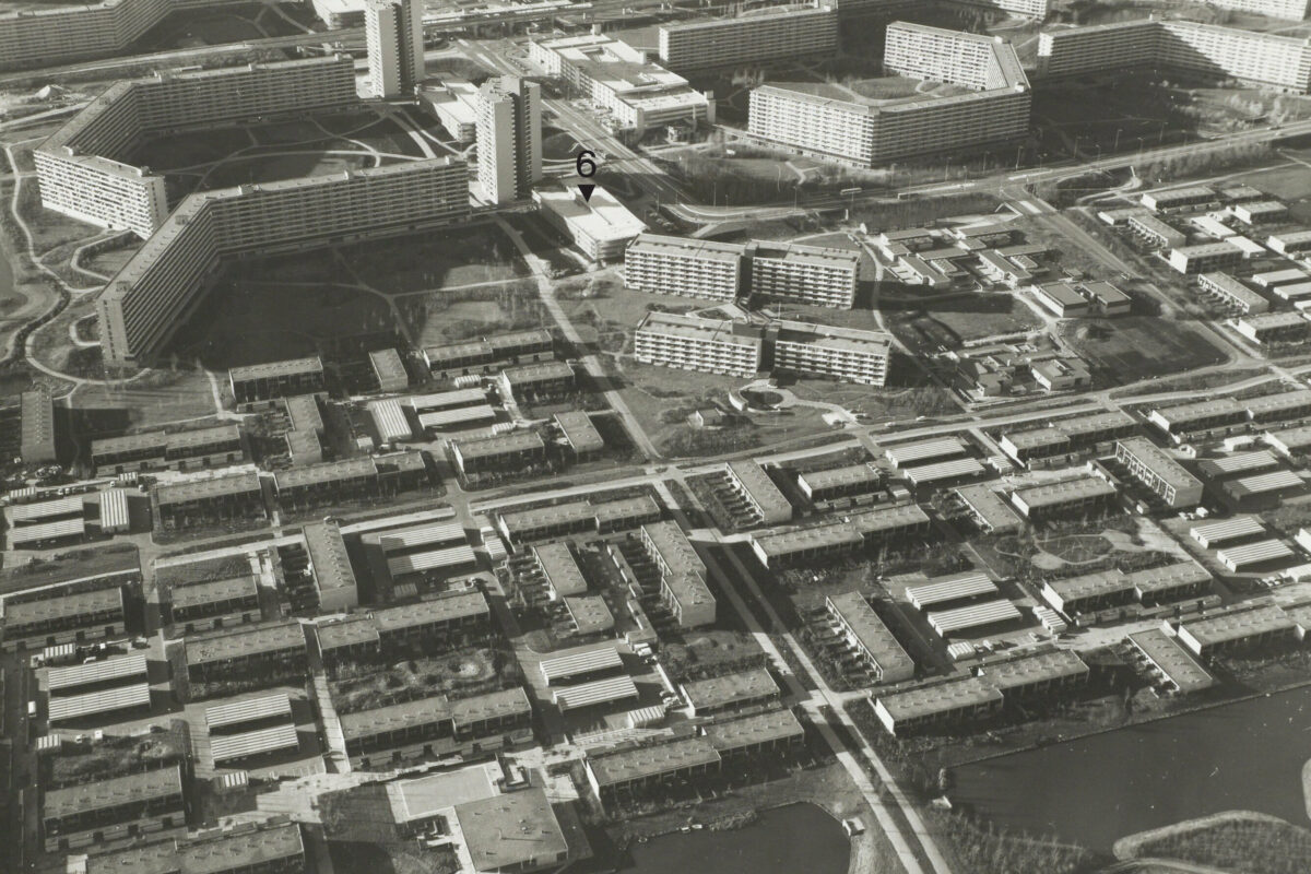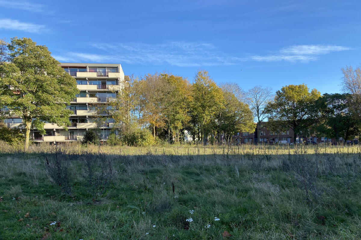 The collection of buildings is part of the K-Midden development in the heart of the K-neighbourhood in the eastern part of the Bijlmer in Amsterdam. The originally allocated building envelope called for a closed urban block with high and low building volumes. The site, previously a parking garage, is situated between the 60-meter-tall Kouwenoord apartment block and the Koornhorst residential care centre. To the north is the busy Karspeldreef, while the south borders the green Kantershofpad and the low-rise neighbourhood of Laag Kouwenoord. A key aspect of the K-Midden development is enhancing the surrounding landscape and expanding the green structure.