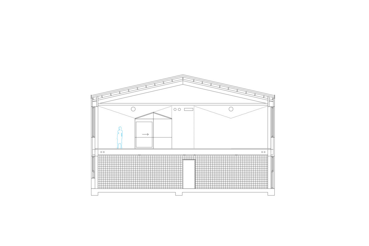 The primary goal of the conversion is to create large, open spaces where companies can collaborate and share facilities. All system walls and ceilings are removed, exposing the trusses, concrete columns and beams of the original loadbearing structure. In the newly created open-plan work areas, a greenhouse construction system was used to install meeting rooms and create separate multifunctional spaces and kitchens. Despite limited financial resources (€ 205/m²), a flexible shell has been created, allowing start-up companies to optimally express their unique identities.